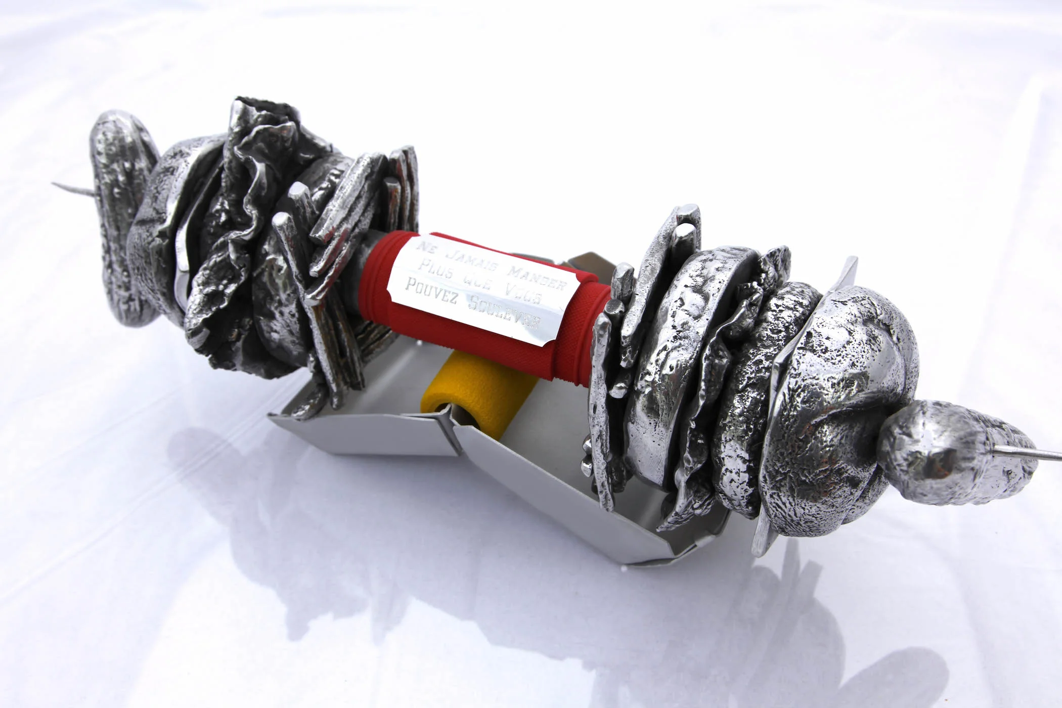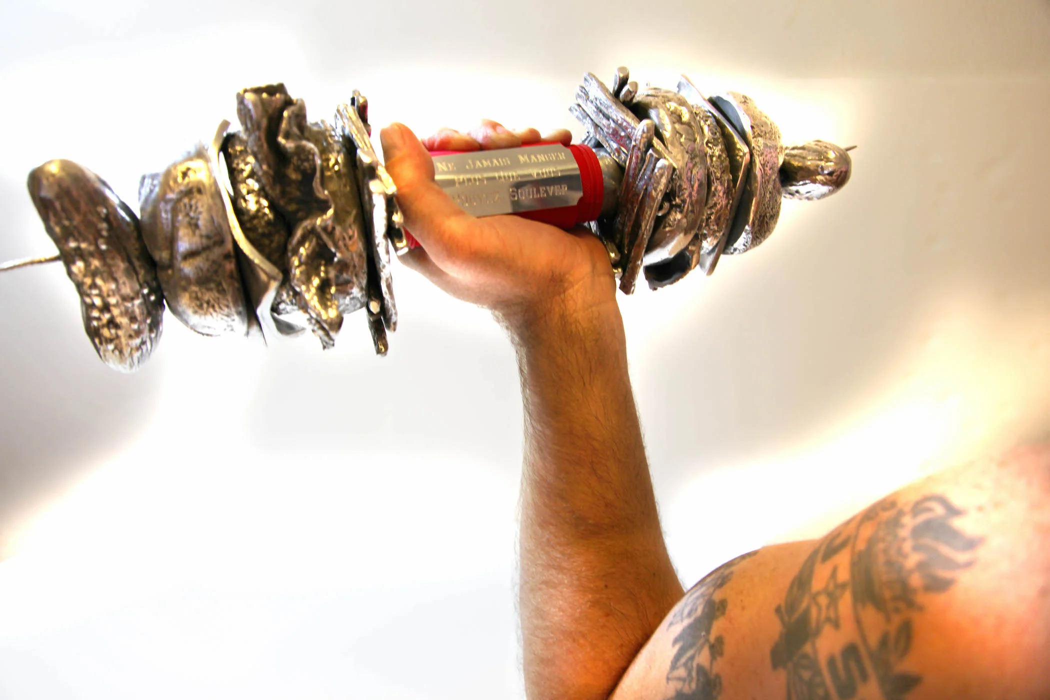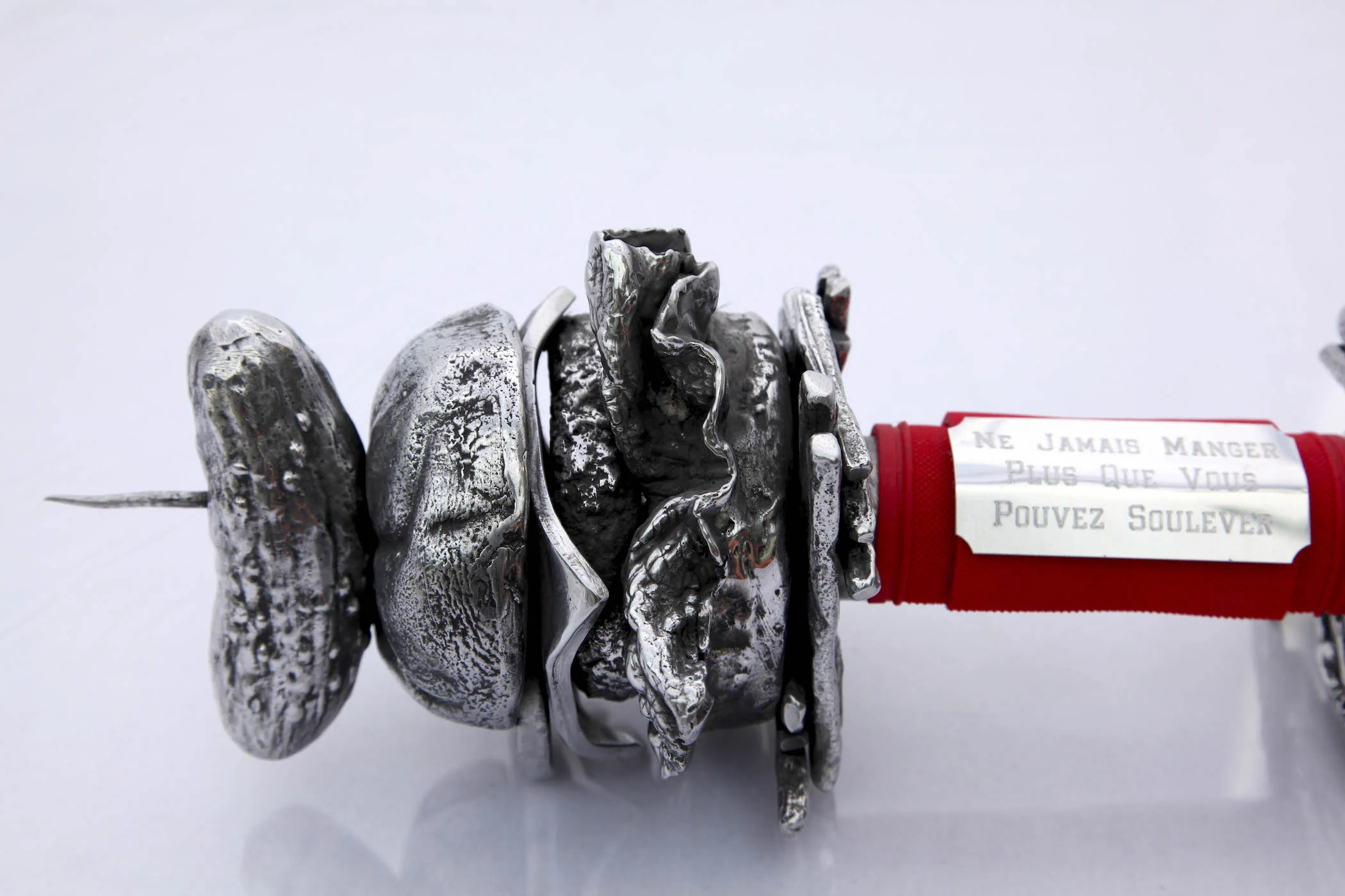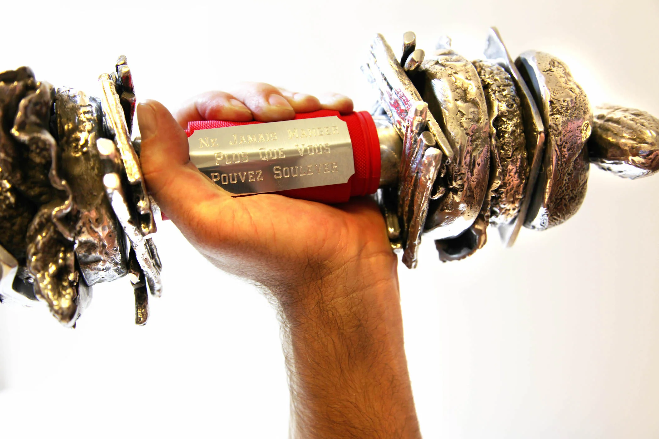 cast aluminum, aluminum engraved plate, rubberized weight grip, steel base